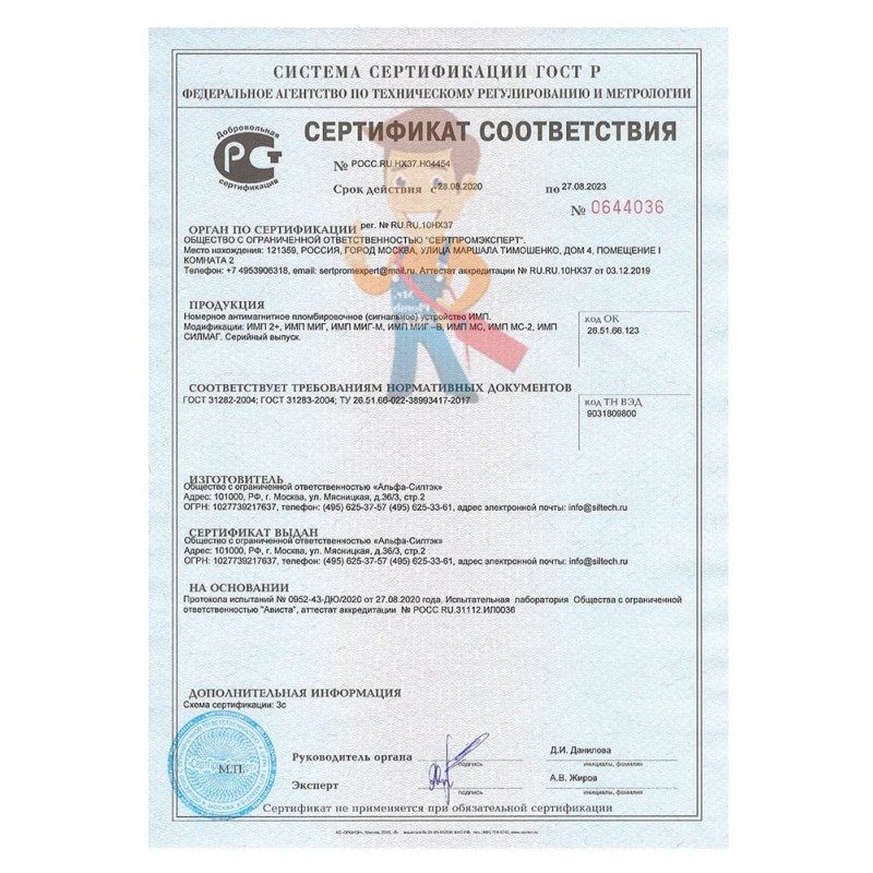Пломба отличается высокой степенью криминальной защиты, имеет отрывную часть, упрощающую занесение информации в журнал учета. Антимагнитный индикатор надежно защищен от восстановления. По сравнению с другими моделями, магнитное поле фиксируется за доли секунды.